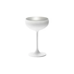 Stolzle 7.75oz Olympia Crystal Champagne Saucer Coupe Glasses – Set Of 6 | White & Silver