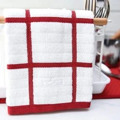 Don’t want to waste time in your kitchen cleaning when you could be doing something else? Get the All-Clad Antimicrobial Kitchen Towel in Check Chili. This oversized kitchen towel is designed to be extra-absorbent, so you can dry your dishes or mop up spills with minimum effort. The unique wave design of the terry cloth can easily reach into small corners and the grout of countertops allowing you to be confident that you’re thoroughly cleaning every inch of your kitchen.