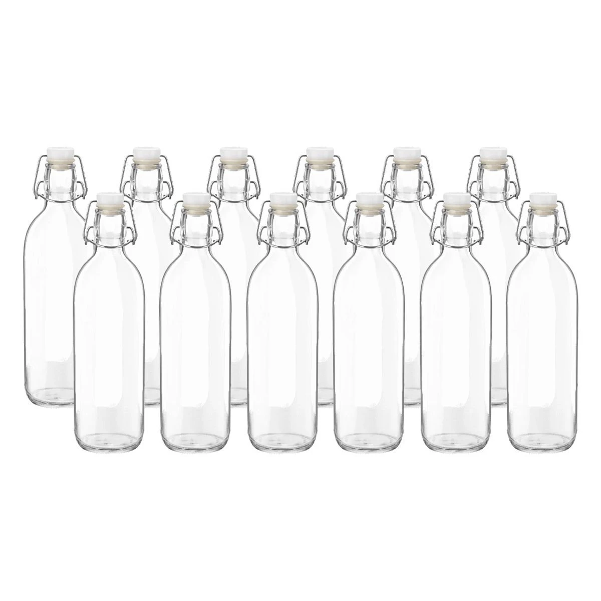 Serve water, soda, infusions, and juices in this classic Emilia Bottle by Bormioli Rocco. This set includes (12) 33.75oz Emilia Glass Bottles that are perfect for both serving and storing anything from sparkling water to oil & vinegar. These clear glass bottles hold 1 liter each, making them the perfect beverage bottles for your table or picnic. The loop plug makes an airtight closure that preserves the aroma and scent of drinks, keeps beverages fresh, and protects against spills, while the easy-pour spout allows for drip-free pouring & serving. The Emilia bottle is perfect for classic bottle lovers! You’ll love bringing it out at brunch or just dressing your table up a bit for a simple dinner.