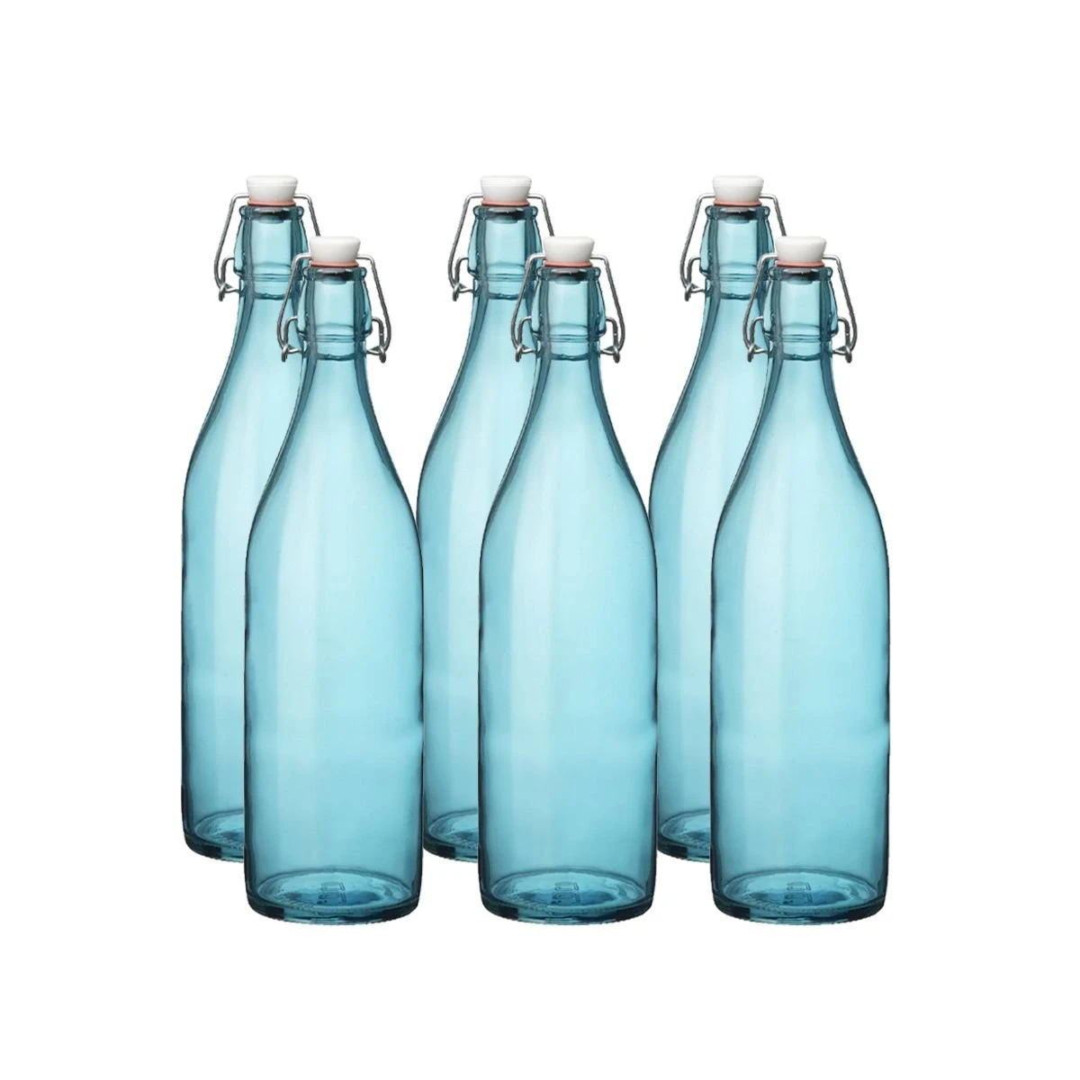 Add a stylish pop of color to your table setting with beverages, oils, vinegars, and more served with the Bormioli Rocco 33.75 oz. Swing Top Giara Glass Bottle Set in Sky Blue! This set includes 6 bottles that are perfect for serving oil & vinegar, flavor-infused waters, premixed cocktails, and more. Each bottle has an airtight and leakproof swing-top lid that’ll keep contents fresh while serving or storing. Plus, they’re great for table decorations, home décor, arts & crafts, and more! For a sophisticated touch to formal dinner parties and casual dining, try the Bormioli Rocco Giara Bottles today!