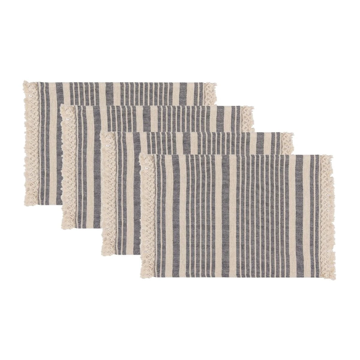 Create a stylish and neutral table setting year-round with the Danica Heirloom Piper Collection Midnight Placemats – Set of 4! Made of 100% cotton, these woven placemats are designed with delicately tied fringe along the edges and feature stylish stripes for an elegantly neutral display that’ll accent any kitchen décor and dinnerware. With rich colors and inviting soft textures, the Danica Heirloom Placemats will help create an extra-special backdrop while enjoying meals around the table with family & friends.