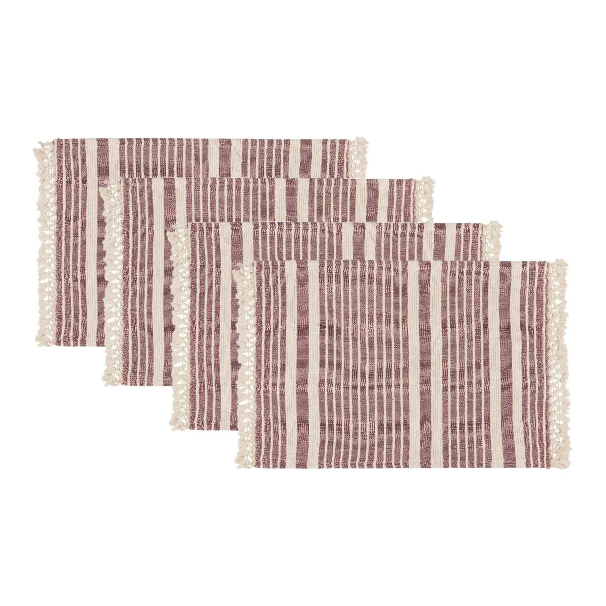 Create a stylish and neutral table setting year-round with the Danica Heirloom Piper Collection Wine Placemats – Set of 4! Made of 100% cotton, these woven placemats are designed with delicately tied fringe along the edges and feature stylish stripes for an elegantly neutral display that’ll accent any kitchen décor and dinnerware. With rich colors and inviting soft textures, the Danica Heirloom Placemats will help create an extra-special backdrop while enjoying meals around the table with family & friends.