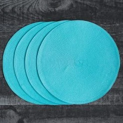 Bring a bold & chic look to your table setting with the Now Designs by Danica 15” Disko Placemat Set in Turquoise! This set includes four placemats that are made of 100% woven polypropylene. These durable placemats easily wipe clean and are perfect for both indoor and outdoor use. With multiple color options, the Now Designs by Danica Disko Placemats can be mixed & matched with other colors within the collection and will easily complement your existing dinnerware. Plus, they double as trivets and can be used to protect your table from hot pots & pans. Perfect for creating a stylish table setting, these large placemats will be a stunning accent to your kitchen décor!
