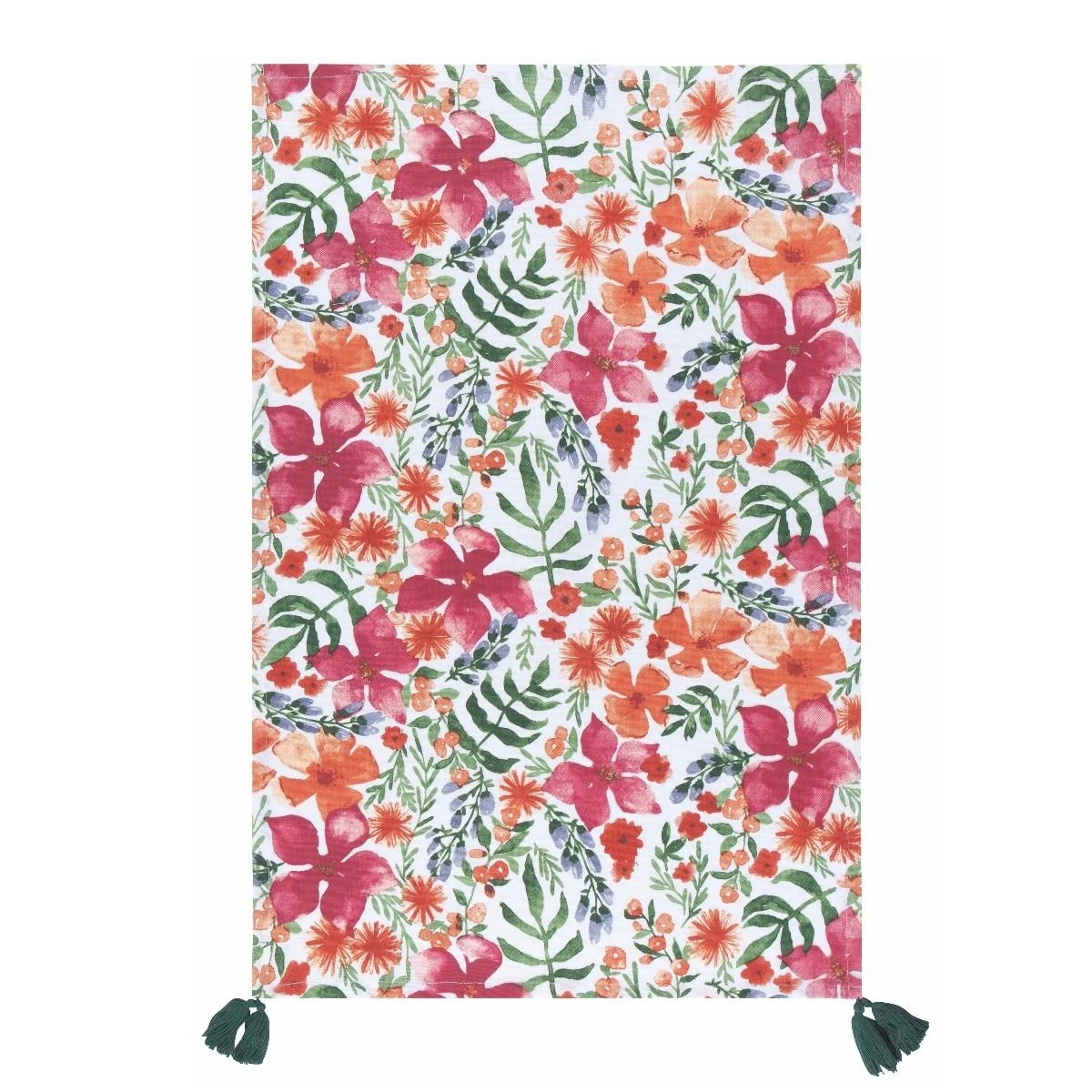 Add a bit of color and boldness to your home with the Now Designs by Danica 20″ x 30″ Printed Dishtowel in Botanica! This vibrant dishtowel is adorned with bright pinks, oranges, and greens sprawling across a botanical print, while dark green tassels on the bottom corners add a unique flair! Made from 100% cotton, this towel is machine-washable. Whether you’re drying dishes, drying your hands, or draping your towel over the oven handle for decoration, use the Now Designs by Danica 20″ x 30″ Printed Dishtowel in Botanica!