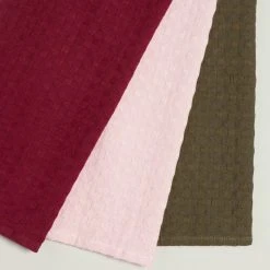 - Includes three dishcloths in blush, wine red and dark brown, nestled in an adorable beige storage basket