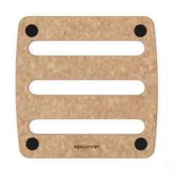 Protect your tables and countertops while stylishly serving your favorite dishes. The Epicurean 7″ x 7″ Trivet in Natural & Black is crafted from our signature wood composite and can withstand temperatures up to 350°F / 176°C. Silicone buttons run through the trivets to grip both the pan and countertop for safer serving. The vent design also allows excess heat and moisture to escape. The trivet is made with 3/16 inch material.