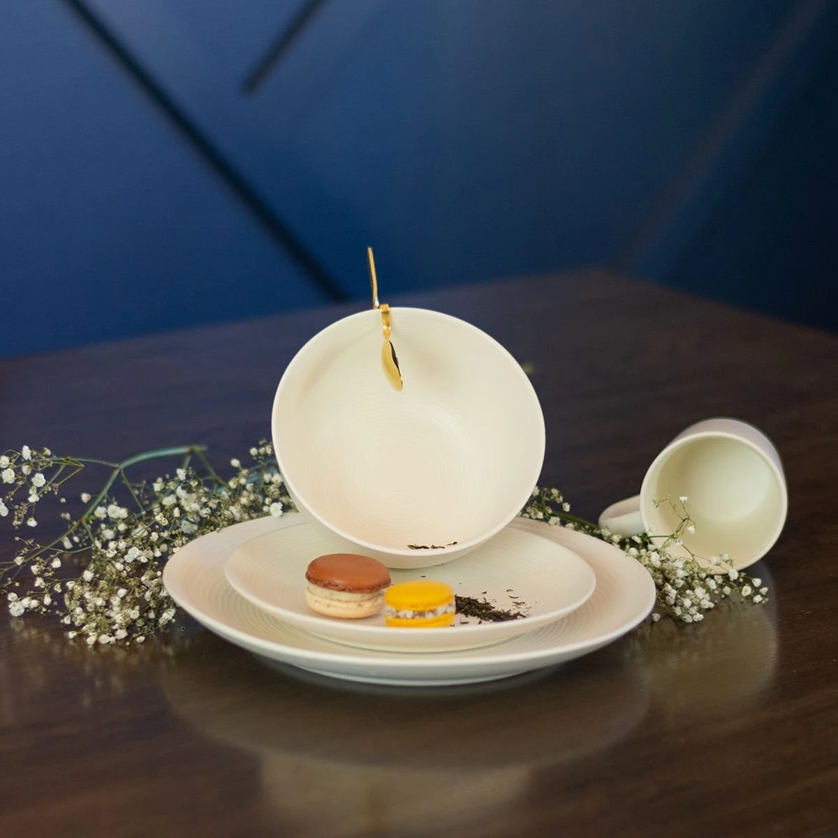 Everything Kitchens Modern Colorful Neutrals – Rippled 16-Piece Dinnerware Set (Beige) Features: