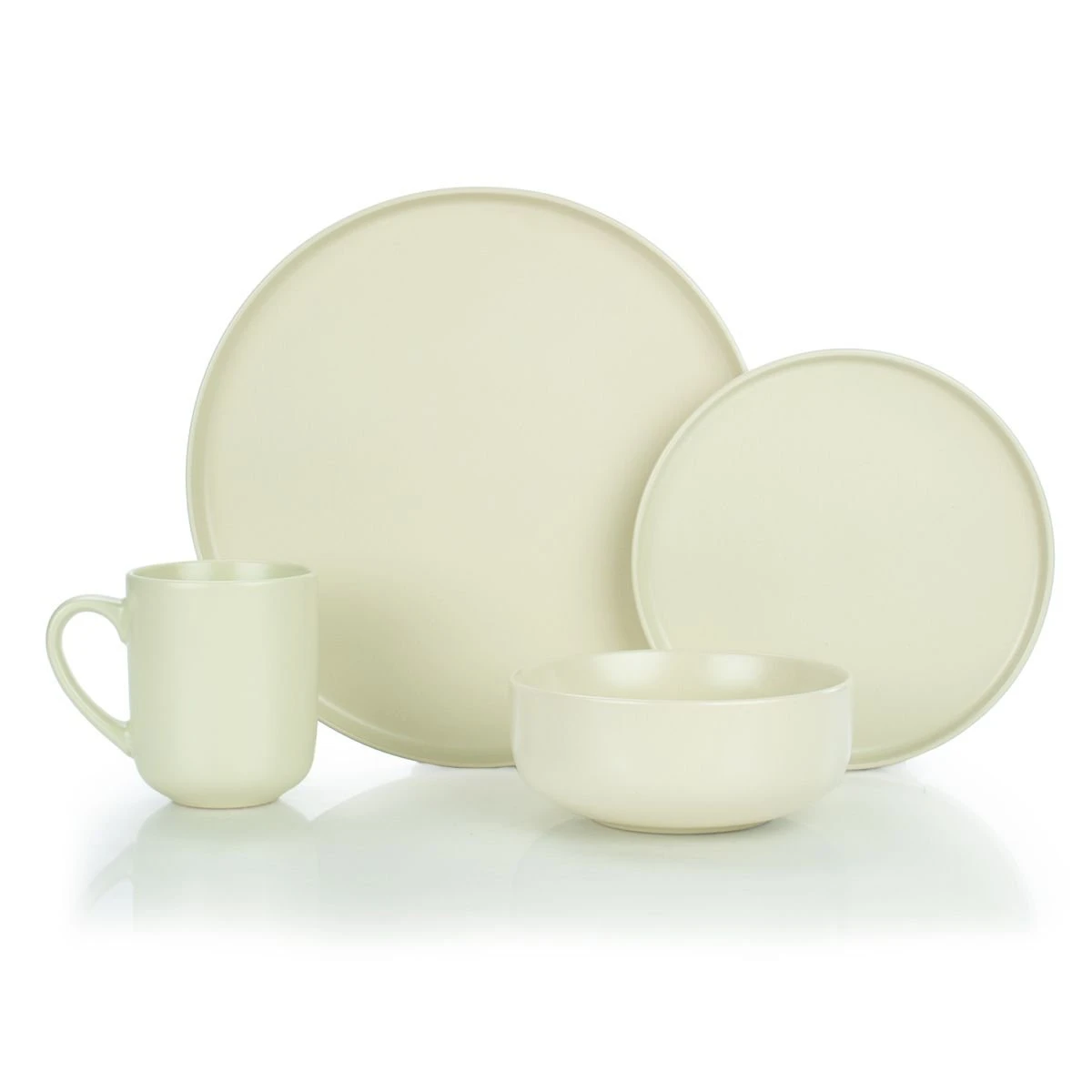 Everything Kitchens Modern Flat 16-Piece Dinnerware Set – Beige Features: