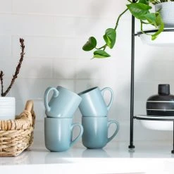 Sip your morning coffee or tea from a mug that captures the essence of your modern minimalist style with the Everything Kitchens Modern Flat 8-Piece Mug Set in Dusty Blue & Terracotta! These stoneware mugs are the perfect way to add a subtle pop of color to your kitchen while blending in with your neutral aesthetic. The clean, modern shape pairs beautifully with other pieces from the Everything Kitchens Modern Flat Collection, and the matte glaze in Dusty Blue & Terracotta delicately dresses your tabletop with subtle chicness. The 15oz capacity is the perfect size for a generous pour of coffee to start your day or a steamy cup of herbal tea when getting ready for bed, and the elegantly curved handle makes for easy carrying. Complement your modern or contemporary kitchen with the Everything Kitchens Modern Flat 8-Piece Mug Set in Dusty Blue & Terracotta!