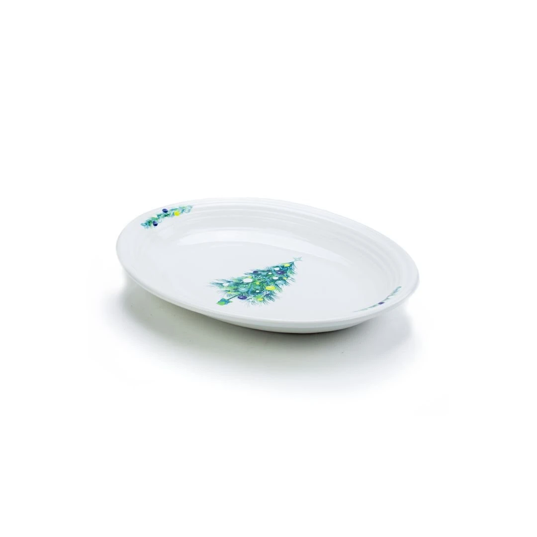 Fiesta®’s vibrant Blue Christmas Tree 11.6” Platter will brighten your holiday dinner table! Crafted for people who love to cook, eat, and entertain, this sturdy platter is made from the same legendary china used in Fiesta®’s bakeware. It’s designed to stay beautiful through daily use with a bright glaze that resists chips, scratches, and stains. This platter is part of the Blue Christmas Tree Collection on Fiesta®’s classic White dinnerware pieces and features traditional Christmas Tree branches strewn with blue accents, invoking the spirit of that famous Christmas carol.