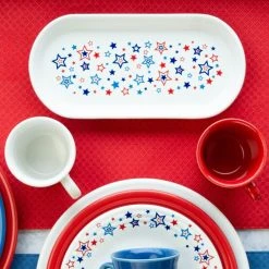 Add beauty to an otherwise ghostly holiday with Fiesta® 12″ Bread Tray from the Americana Stars Collection! Your favorite red, white, and blue treats will be even more delicious sliced and piled high on this pretty bread tray. This bread tray features the patriotic Americana Stars design with vibrant red and blue stars dotting a white background.