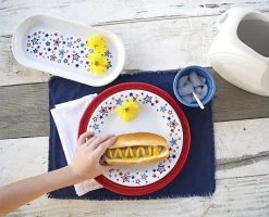 Like all Fiesta®, this tray is fully vitrified, industrially strong, and lead-free. It’s dishwasher, oven, and microwave safe, and since it comes with a 5-year chip-free warranty, it’ll be as beautiful years from now as it is today. With a length of 12-inches, it’s large enough to accommodate bread, rows of finger sandwiches, cookies, caramel apples, and other classics. Add this pretty tray to your Americana Stars Fiesta® collection, or if this is your first piece, combine it with white or any of the signature colors used in the pattern to create a beautiful, festive table!
