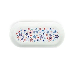 Add beauty to an otherwise ghostly holiday with Fiesta® 12″ Bread Tray from the Americana Stars Collection! Your favorite red, white, and blue treats will be even more delicious sliced and piled high on this pretty bread tray. This bread tray features the patriotic Americana Stars design with vibrant red and blue stars dotting a white background.