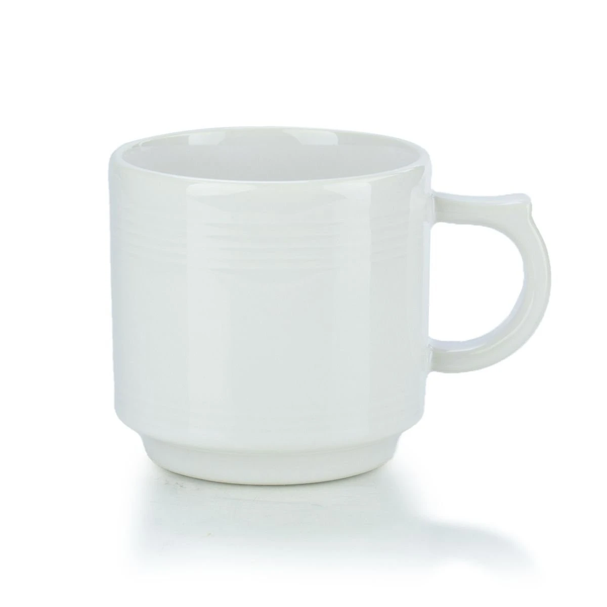 Enjoy a hearty portion of your favorite warm drink or even soup, cereal, or ice cream in the 16oz Stackable Mug in classic White! The signature Fiesta® ring motif surrounds the upper portion of this large mug, while the bottom of the mug is shaped to nest securely into the top of another mug to maximize stability when stored.