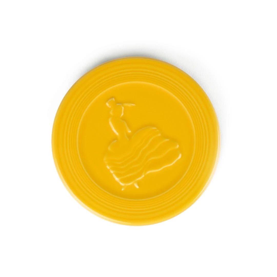 Enjoy a bright pop of color in your kitchen while protecting your countertops and tables from burns with Fiesta®’s 6” Ceramic Trivet in Daffodil Yellow. The iconic Fiesta® Dancing Lady adorns the center of each trivet which can serve double-duty as a spoon rest to place ladles and utensils in between uses. The durable glaze will resist chipping and cracking while remaining beautiful for years to come. Mix and match with other Fiesta® pieces to create a bright and fun collection!