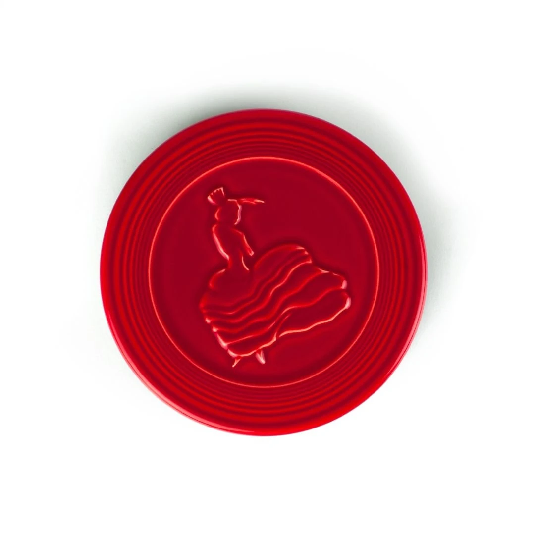 The Fiesta® ceramic trivet (443326 in scarlet red) slides underneath hot plates & pans to keep them from contacting countertops & table surfaces surfaces directly. It also doubles as a large spoon rest on which to place ladles and utensils between uses.