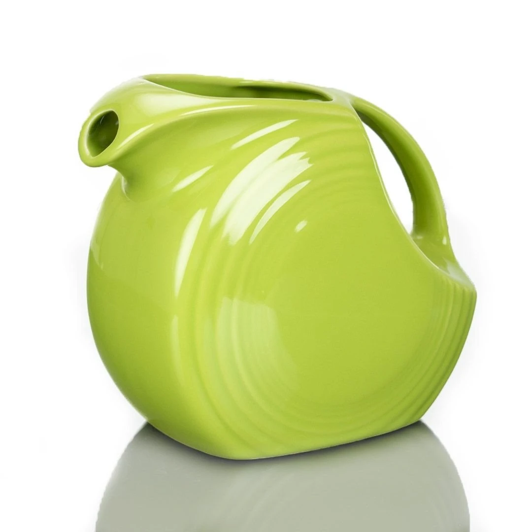 2-Liter Disk Pitcher: Fiesta®’s 2-Liter Disk Pitcher is made of fully vitrified lead-free china that’s chip-resistant for a durable piece that’ll last years of use. The rich glaze is highlighted with the trademark Fiesta® accent rings for a stylish display. The large handle & easy-pour spout provide comfortable, mess-free serving, while the generous 2-liter capacity makes it the perfect size for serving fresh lemonade or iced tea for the whole family to enjoy. Plus, it’s microwave & dishwasher-safe for easy cleaning!