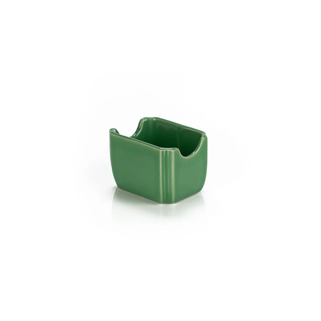 Your table setting would not be complete without this unique Sugar Packet Caddy in Meadow Green from Fiesta®. This 3.5” long sugar packet caddy is reminiscent of the Art Deco Era and the glaze really makes this charming table addition pop! You can always count on the Homer Laughlin 5-year chip warranty to protect your investment. Mix and match with other Fiesta® pieces and create exactly the look you want!