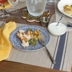 Bring the beauty of intricately designed Moroccan textiles to your dinner table with the Fortessa Casablanca 8″ Salad & Dessert Plate in Blue. Inspired by the tiles and rugs found in Marrakesh bazaars and souks, this plate is adorned with a complex geometric design that will breathe bohemian inspiration to your tabletop. Made of Fortessa TechnoCeram, this plate is comprised of vitrified china and reinforced with alumina oxide – allowing for both durability and affordability without compromising your aesthetic. The 8″ diameter makes them ideal for serving starters and appetizers, and the heat-resistant and oven-safe construction allows you to prepare single servings of rich and decadent lava cake or homemade apple pie that is perfectly warmed and ready to serve after dinner. To add a touch of global charm to your tabletop, use the Fortessa Casablanca 8″ Salad & Dessert Plate in Blue!