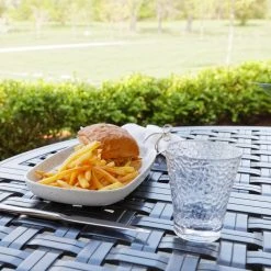 Serve juice, iced tea, or refreshing cold water in an elegant glass that safely travels from your dining room table to your cozy patio fire pit with the Fortessa OutSide 10oz CoPolyester Hammered Juice Glass! The OutSide Collection makes choosing between practicality and elegance a thing of the past by creating virtually break-proof drinkware pieces that are perfect for garden parties, picnics, patio gatherings, and more. Made of Eastman Tritan Copolyester, this glass offers the brilliant clarity of high-quality glassware in a shatter-resistant design that keeps the party going by preventing broken glasses during your liveliest occasions. At 10oz, the Hammered Juice Glass is perfect for sipping orange juice, lemonade, apple juice, ice-cold tea, and even water while the hammered finish adds an elevated touch to your cocktail presentation. You may even get a little fancy with some alcoholic concoctions like mimosas and screwdrivers to serve for brunches and small get-togethers. The brilliant clarity will not fade or discolor over time, and the dishwasher-safe construction allows it to be your go-to drinking vessel when hosting festivities for years to come. When your celebrations are sure to head outdoors, use the Fortessa OutSide 10oz CoPolyester Hammered Juice Glass!