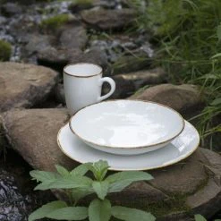 Season every element of your dinner table down to the place settings with the Fortessa Salt Serena Coupe Bowl – 8.9″. Simple yet not under-dressed, this bowl is adorned with the Salt Collection’s crisp linen white and rimmed in an earthy gold – adding a dash of flavor to your tabletop. Made of Fortessa TechnoCeram, this bowl is comprised of vitrified china and reinforced with alumina oxide – allowing for both durability and affordability without compromising your aesthetic. The large 8.9″ diameter is the perfect size for bisques, pasta dishes, and more, and the dishwasher-safe and heat-resistant construction makes cleaning up after meals a breeze. Ensure your table is seasoned as well as your dinner with the Fortessa Salt Serena Coupe Bowl!