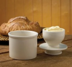 Keep your butter fresh and never rip another piece of toast with the Mrs. Anderson’s Butter Keeper from the Harold Imports Company. This ceramic, earthenware butter keeper holds up to 4oz of butter and is microwavable, so you can soften firmer butter in a pinch. This butter keeper uses a small amount of water in the base to create an airtight seal that allows butter to remain fresh for up to 30 days. Just change out the water every 3 days and you’ll get perfectly soft butter. The simple design of the white ceramic butter bell makes it easy to add into your kitchen decor. Get your butter keeper today and enjoy fresh butter that won’t be a pain to spread!