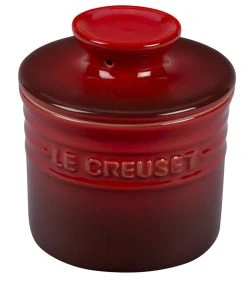 This genius invention originated in the Middle Ages as a way of storing butter with out refrigeration. The Le Creuset Butter Crock makes a wonderful and innovative way to keep butter soft. A great conversation piece and easy to clean with a nonstick interior that is dishwasher safe. In georgeous cherry red it is sure to stand out on your dinner table.