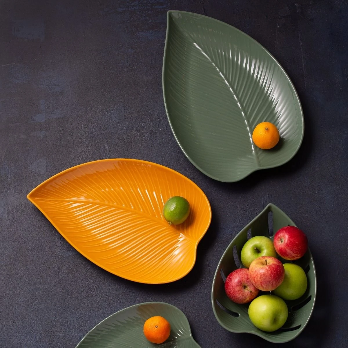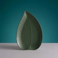 - Beautiful green leaf-shaped platter with textured interor line design is a unique and delightful way to serve foods