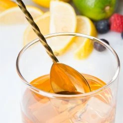 Whether its classics like Old Fashioneds, whiskey sours or martinis or something a bit more trendy – think pumpkin spice Moscow Mules – mixing drinks for your cocktail-loving friends starts with reaching for professional-quality bar tools from Barfly Mixology Gear by Mercer. Show your deft hand at smoothly mixing cocktails made to order or by the pitcher with the Mercer Barfly 13.2” Gold-Plated Japanese-Style Bar Spoon M37010GD. Barfly’s handsome bar spoon is made of a single piece of gold-plated stainless steel that won’t absorb stains or odors that could cloud the taste of fine spirits. This dual-use bar utensil has a precision-molded spoon on one end for accurate measuring, precise pouring, and gentle stirring; the other end is a slightly concave “Japanese Style” machined edge to expertly transport and mix small quantities of garnishes and ingredients. The elegant spiraled handle is designed with a twist to gently blend without bruising, and at a stately 13.2” long, it’s perfect for tall drink glasses and pitchers. With such alluring looks and expert performance, Barfly Mixology Gear by Mercer can turn your kitchen into the neighborhood’s trendiest cocktail lounge.