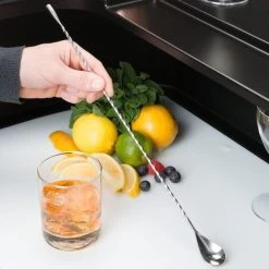 Martinis. Manhattans. Old Fashioneds. Whiskey Sours. Mixing the classics for your cocktail-loving friends starts with reaching for classic bar tools from Barfly Mixology Gear by Mercer. Show your hand at smoothly mixing cocktails made to order or by the pitcher with the Mercer Barfly 15.75” Stainless Steel Classic Teardrop Bar Spoon M37013. Barfly’s beguiling bar spoon with the vintage design is made of a single piece of stainless steel that won’t absorb stains or odors that could cloud the taste of fine spirits. This dual-use bar utensil has a precision-molded spoon on one end for accurate measuring, precise pouring, and gentle stirring; the other end is weighted with a classic “teardrop,” a perennial favorite of professional bartenders for providing balance and easy mixing. The elegant spiraled handle is designed with a twist to gently blend ingredients without bruising, and at a stately 15.75” long, it’s perfect for tall drink glasses and pitchers. With such alluring looks and expert performance, Barfly Mixology Gear by Mercer can turn your kitchen into the neighborhood’s trendiest cocktail lounge.