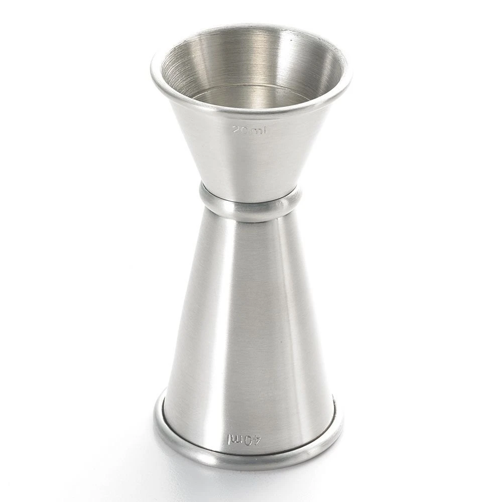 Make the perfect cocktail with this Barfly Stainless Steel Jigger! This stainless steel double jigger measures 20mL on one side and 40mL on the other—perfect for adding 20mL of gin to a gin and tonic or 40mL of simple syrup to a classic daiquiri. It has internal measurement lines for even more options. Made of 18/8 stainless steel and featuring a rolled top edge for strength, this Japanese style jigger will serve your guests a fantastic cocktail every time. And thanks to its industrial-style feel and shiny steel finish, you’ll love displaying it!