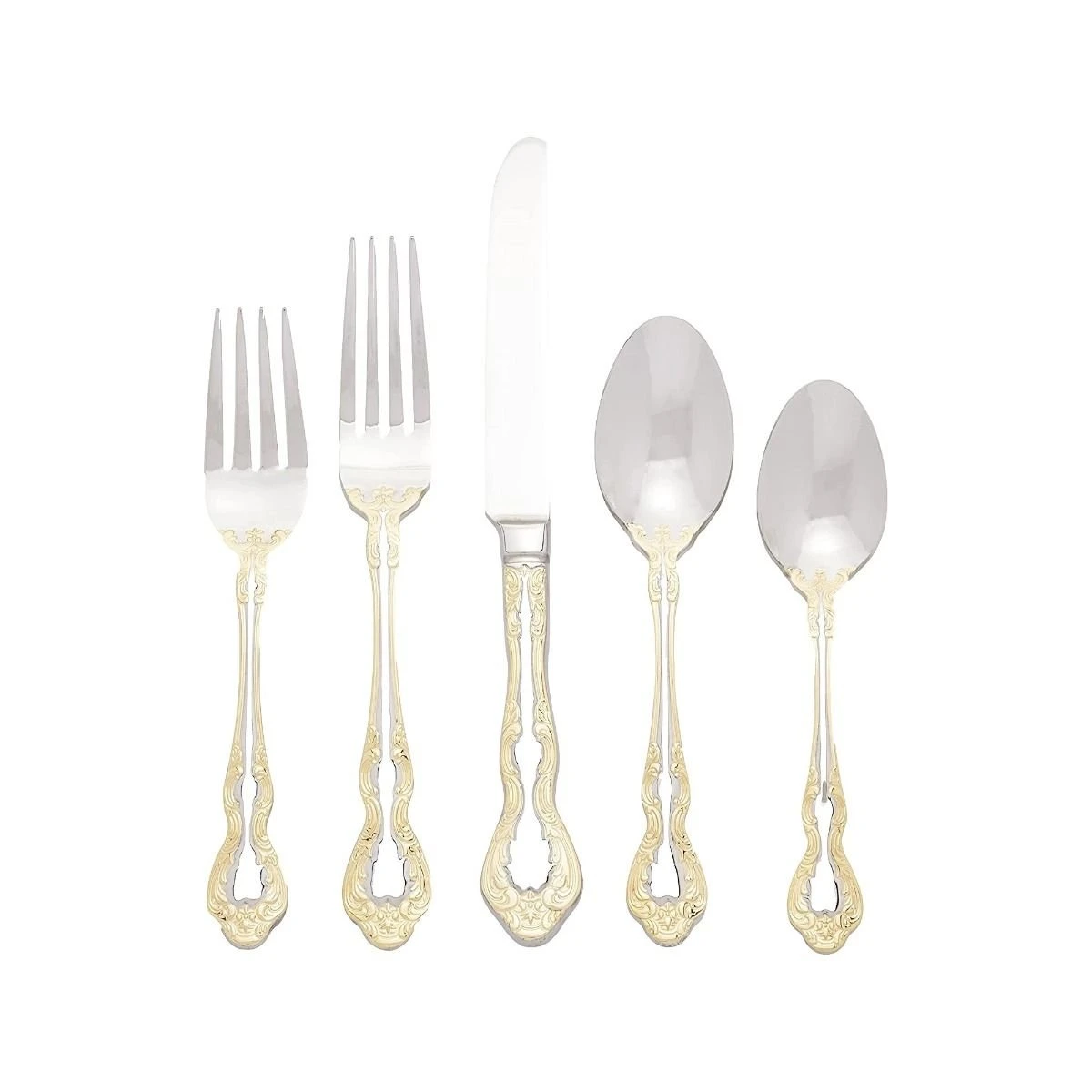 - Delicate baroque-inspired finish around each utensil’s handle