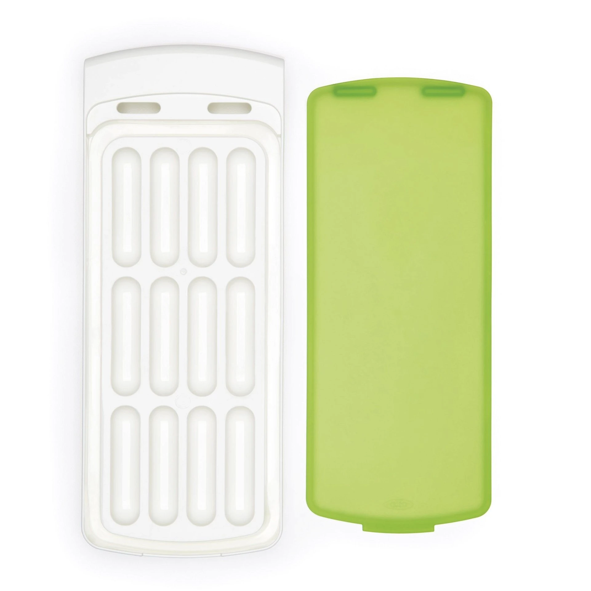 Keep drinks chilled in your reusable bottles with the OXO No-Spill Ice Stick Tray! This innovative ice tray makes skinny ice sticks that are perfect for use in water bottles, canteens, thermoses, and other containers with small openings. With a removable silicone lid that keeps odors out and prevents water from spilling, this ice stick tray can be stacked or stored in the freezer at any angle, saving you freezer space. With the OXO No-Spill Ice Stick Tray, you’ll have skinny ice sticks perfect for filling your bottles and thermoses so you can enjoy ice-cold water at the gym, on a hike, or on the go!
