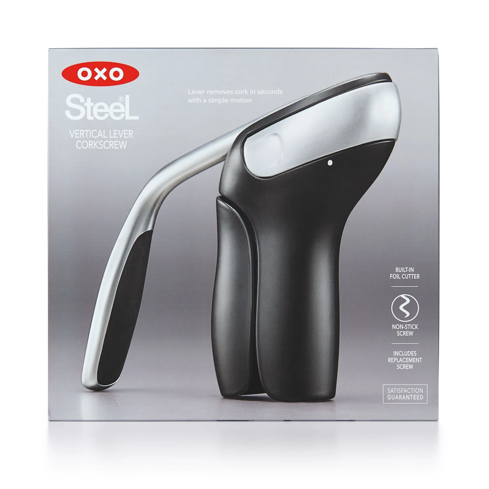 OXO SteeL Vertical Lever Corkscrew Features: