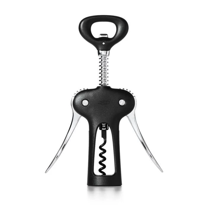 Open your favorite beverage with ease using the OXO Winged Corkscrew + Bottle Opener. This multi-use tool features a nonstick corkscrew to easily release corkscrews of all types and a built-in bottle opener compatible with all bottled beverages from gourmet soda to your favorite beer. With a nonstick handle, this corkscrew is easy to use and makes uncorking bottles a breeze. Don’t struggle to enjoy a relaxing drink at the end of your long day, get the OXO Winged Corkscrew + Bottle Opener today!