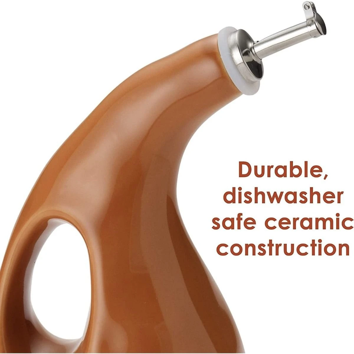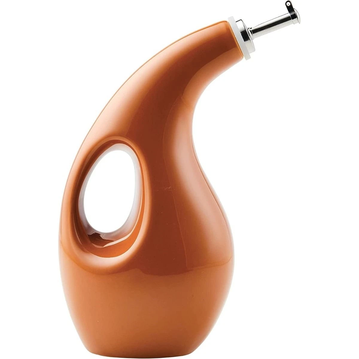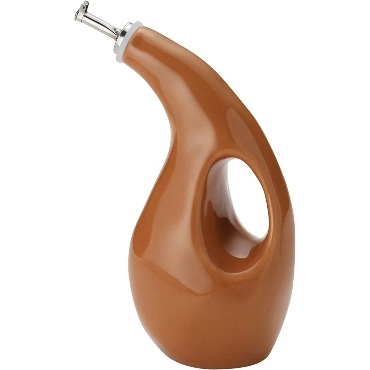 Yum-o! Rachael Ray stoneware oil dispensers are an attractive way to store and serve your extra virgin olive oil (EVOO) for cooking on the stove or serving at the table. This oil cruet takes its design cues from modern art, with a cutout handle that is as functional as it is bold.