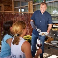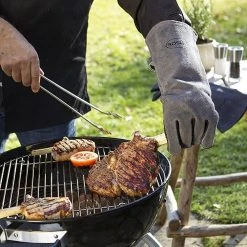 Turn up the heat at your summer barbecues with the Grill Gloves from Rosle! Made of 100% leather, these reinforced gloves protect your hands and arms from heat and flame with a 16″ length for extra safety. Their classically rugged two-toned gray and black appearance features the Rosle logo, and they’re large enough for all hands. Safely grasp a hot grate, turn hot coals and grill up mouthwatering brats and burgers without the risk of burns by ordering your Rosle Grill Gloves today!