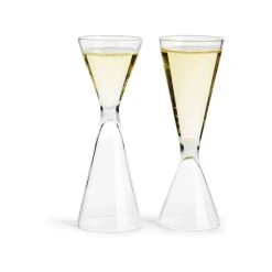 - Shot glasses are reversible, with two sizes in one