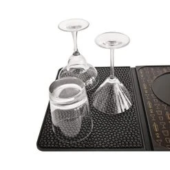 Make pouring and prepping cocktails easier than ever before with the Multi-Use Cocktail Barmat. This unique mat is made from a specialized rubber that is textured to keep your glasses in place. The other half of the mat features a rimming section of 6”, perfect for decorating glasses of any size with ease. The removable cutting mat makes it easy to grate and slice up any garnishes you choose. Keep your countertop clean and your cocktails looking professional with the Multi-Use Cocktail Barmat, get yours today!