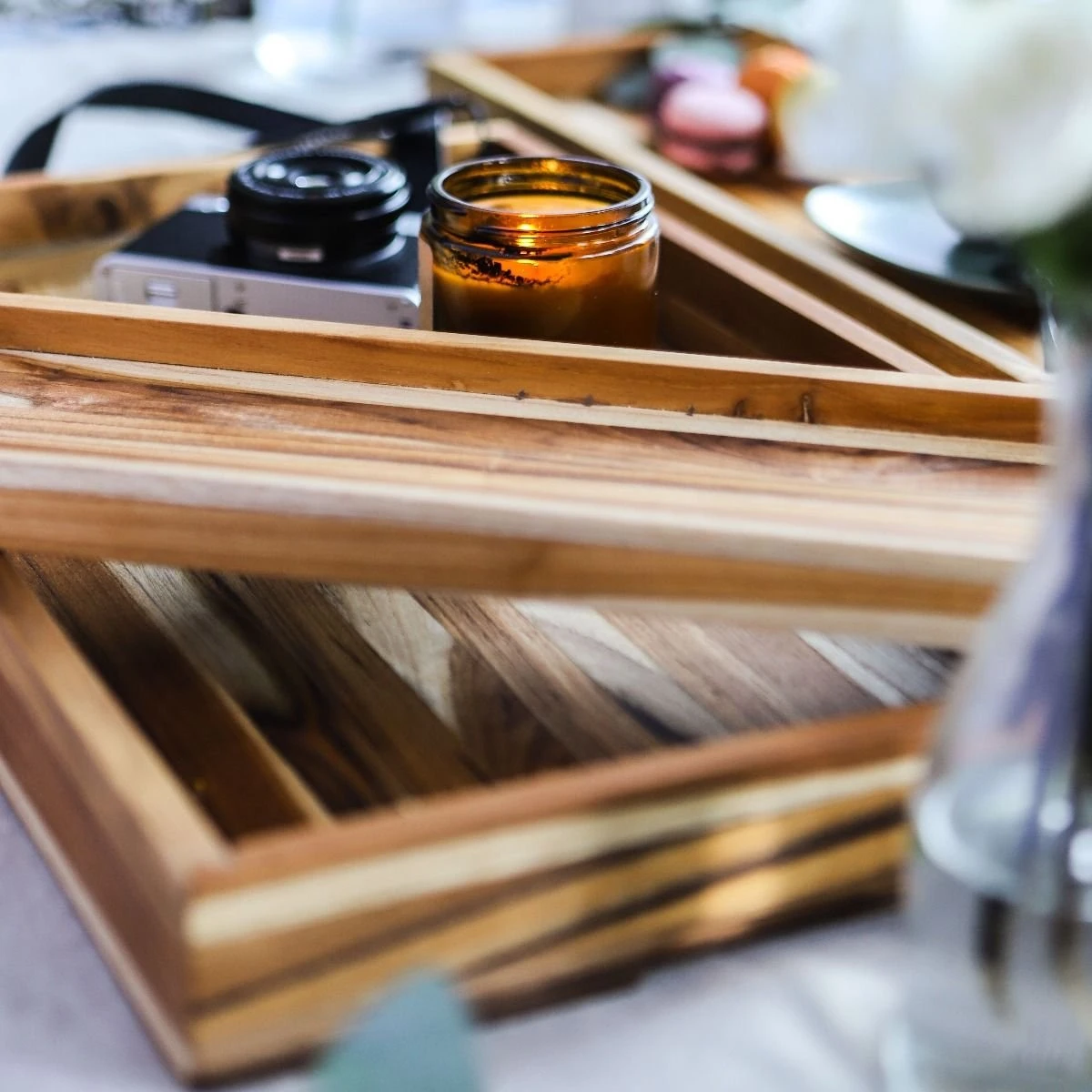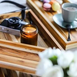 Subtly elevate your everyday serveware or home decor with the TeakHaus Timeless Edge Grain Rectangle Nesting Trays with Handgrips (Set of 3)! Made of sustainably sourced FSC®-certified teakwood, these trays are ideal for elevating your home in a variety of ways – from serving a pastry spread during family breakfast to holding candles and trinkets on your kitchen counter. Featuring handle grooves on the bottoms of the trays and raised sides to keep contents neatly contained, this tray set can easily transform small spaces in your home or bring an attractive edge to your dinner table or appetizer selection during gatherings. Easily refine your home decor with the TeakHaus Timeless Edge Grain Nesting Trays with Handgrips (Set of 3)!