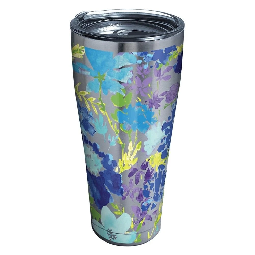 Keep your drink cold for up to 24 hours or hot for up to 8 hours with the triple-layer insulating stainless steel construction of the Tervis® 30oz Triple-Walled Insulated Tumbler in Fiesta® Floral Bouquet – Purple! Sandwiched between the tumbler’s 18/8 stainless steel exteriors is a copper lining similar to that used in quality cookware. Those layers help maintain the temperature of your drink whether hot or cold and reduce condensation on the tumbler’s exterior. The easy-close slider lid seals tightly to prevent leaks and is made from BPA-free clear plastic. Printed directly on the stainless surface with eco-friendly plant-based inks, this tumbler brings a touch of fresh wildflowers to your everyday routine. To best preserve and maintain your tumbler’s artwork, hand wash with soap and a scratch-free sponge. Do not soak or put in the dishwasher, freezer, or microwave.