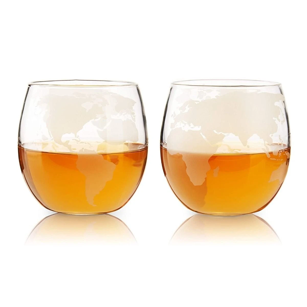 Reminisce on your worldly travels as you and your guests enjoy a glass of bourbon on the rocks with the Viski® Globe Whiskey Tumblers. This beautiful set includes 2 glasses that are crafted from high-quality glass. The outside of each glass features etched continents with a striking frosted effect that accentuates the hue of the bourbon, whiskey, or liquor within for a truly striking display. Packaged in a stylish box that’s great for gifting, the Viski® Globe Whiskey Tumblers will be a stunning addition to your barware collection and makes a perfect uncommon gift for the travel-lover in your life.